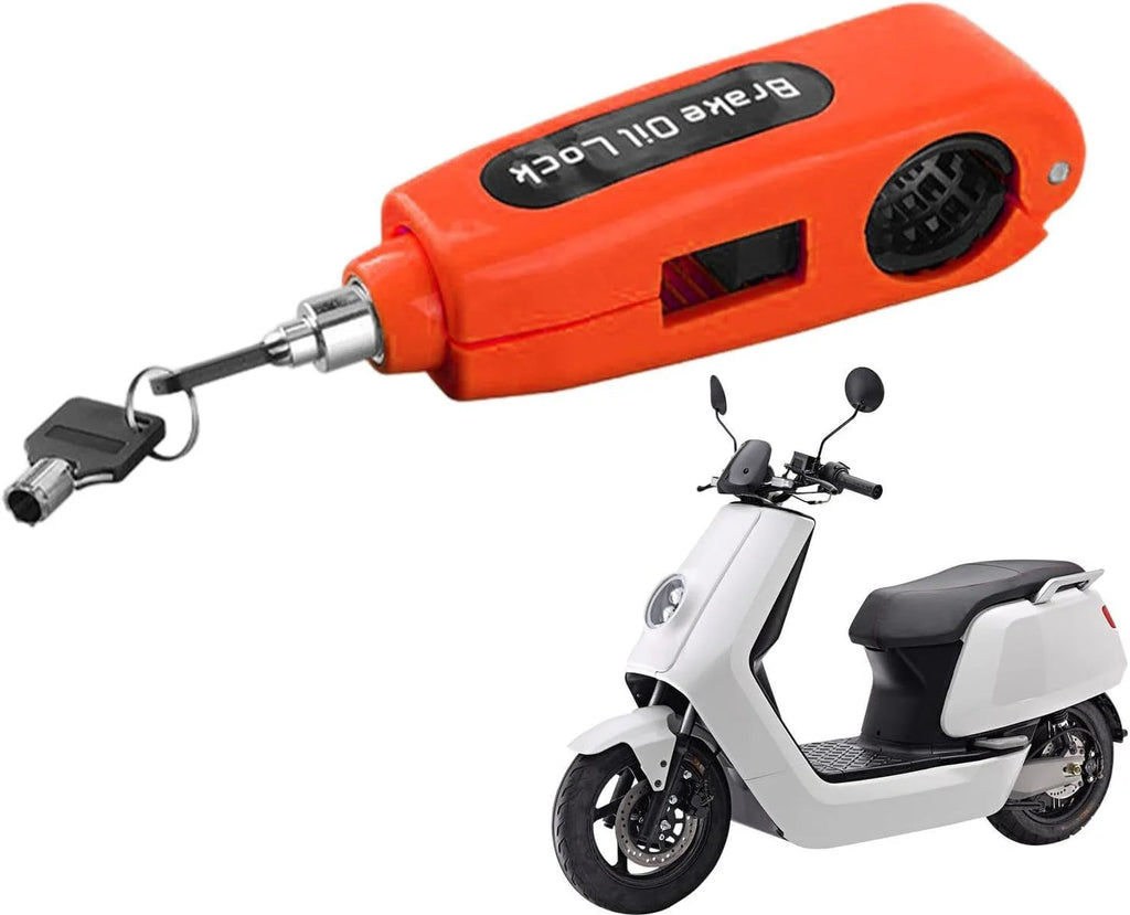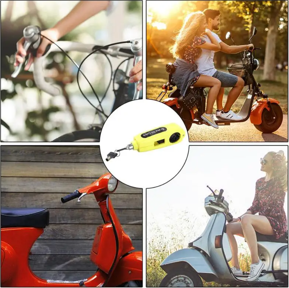 ✅ Simplemente coloca el candado sobre el agarre del acelerador y la palanca de freno, cierra el cuerpo y empuja el bloqueo. No se requiere llave para bloquear el candado.