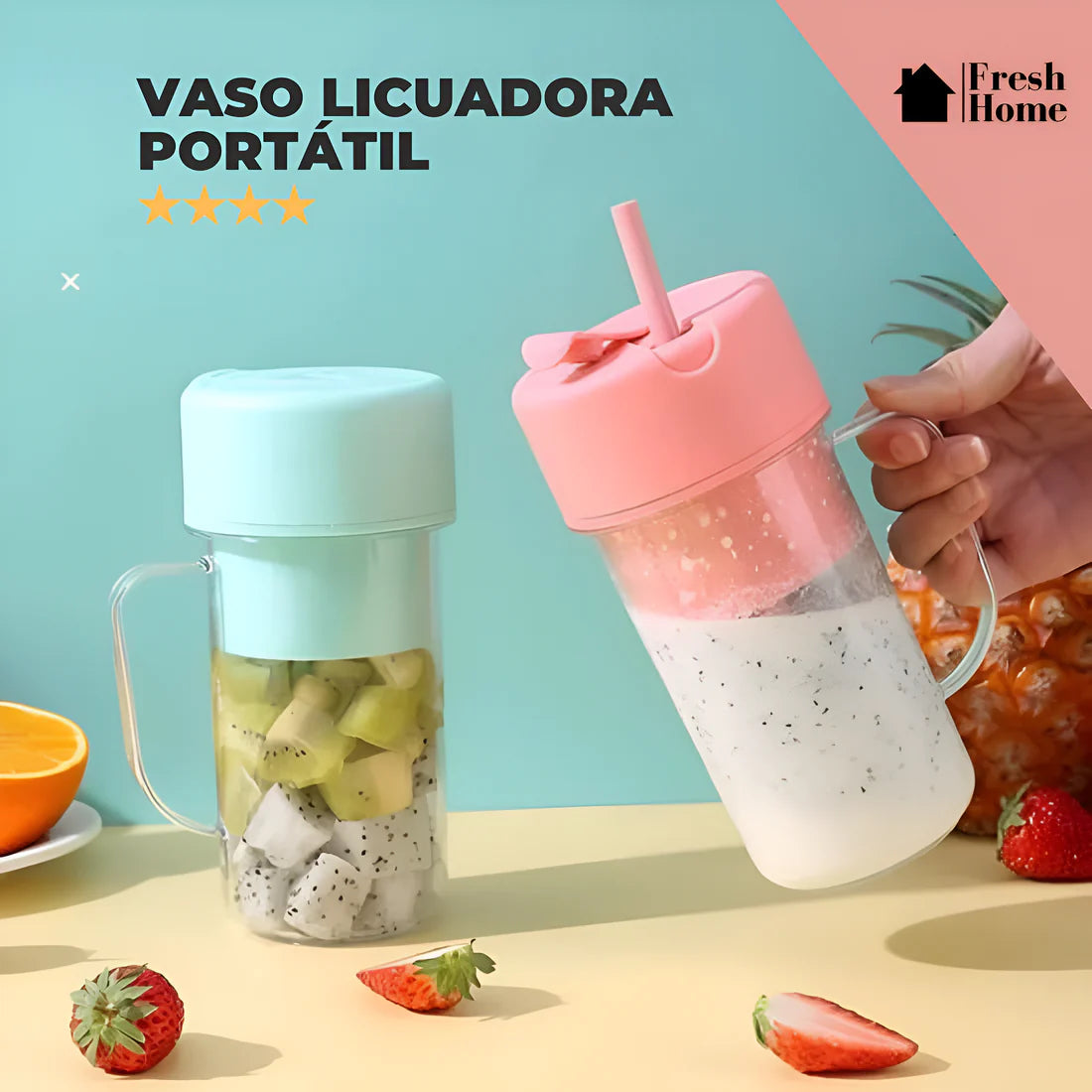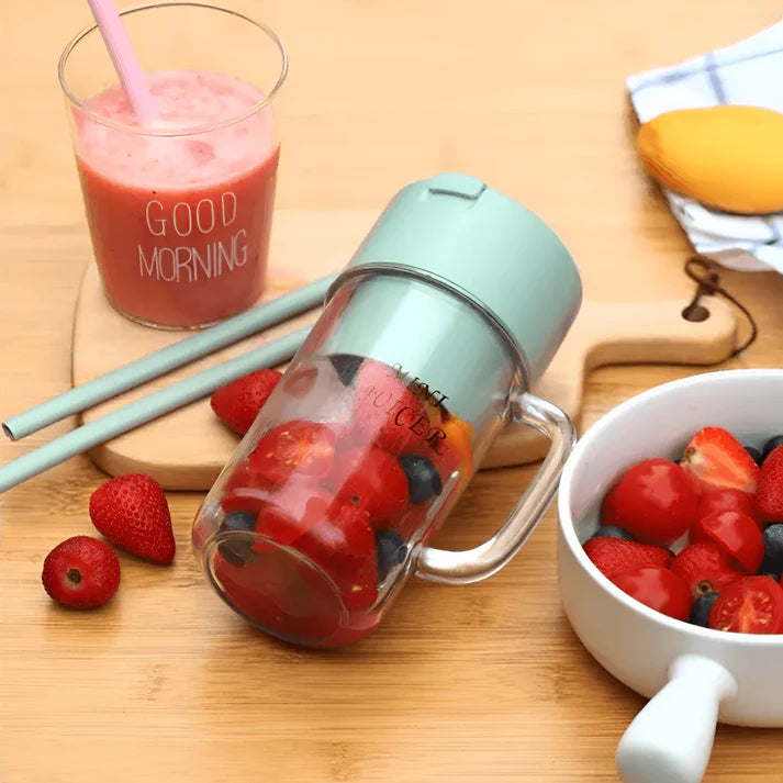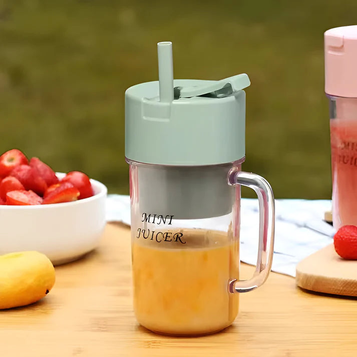 Su capacidad de 340ml es perfecta para porciones individuales y su batería recargable por USB asegura que esté siempre listo para ti. Además, su diseño con tapa tipo popote evita derrames, facilitando el consumo mientras caminas.